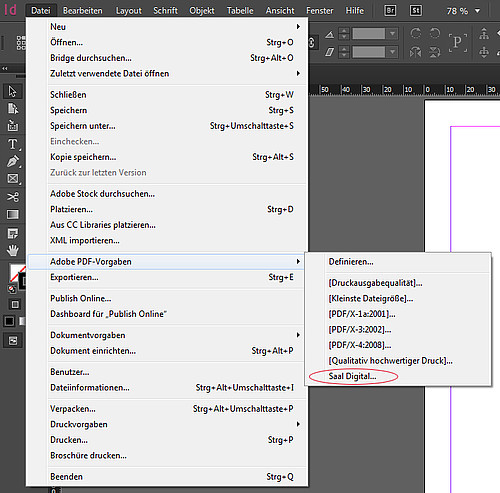 You can now select the Saal Digital profile under Adobe PDF Presets and then export your PDF.