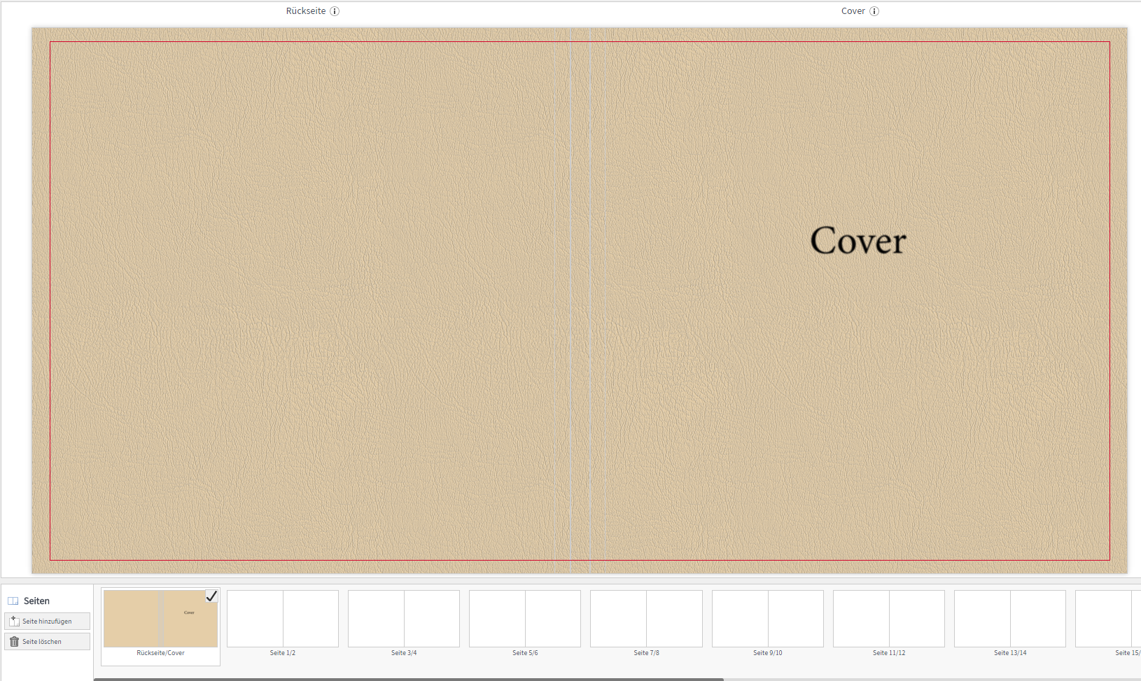 Please note: If you upload the file for the leather cover in the Webshop and do not recognize a leather structure, but you see a white area, your file was created incorrectly. Please check this view with the "100 % Display"button.